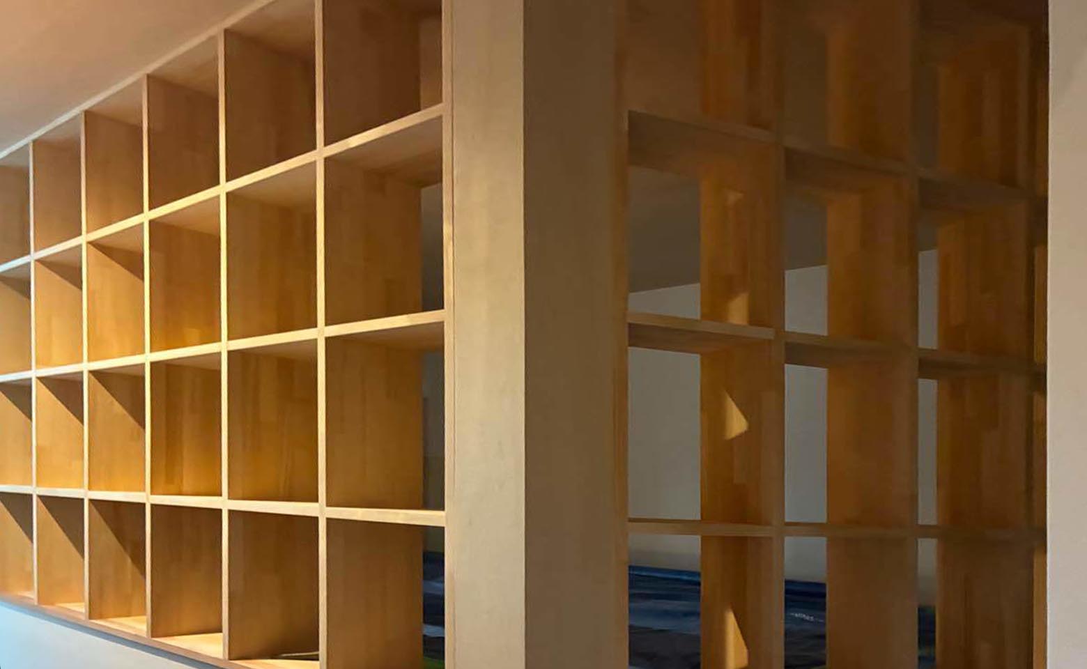 以前、IYsで設計したお宅が、子供たちが大きくなり、子供部屋を分ける改修工事をしています。また頼んでもらえるとは嬉しい限りです。大きくワンルームで造っていた寝室を分けているのですが、本棚を壁のように見立てて、つくっています。