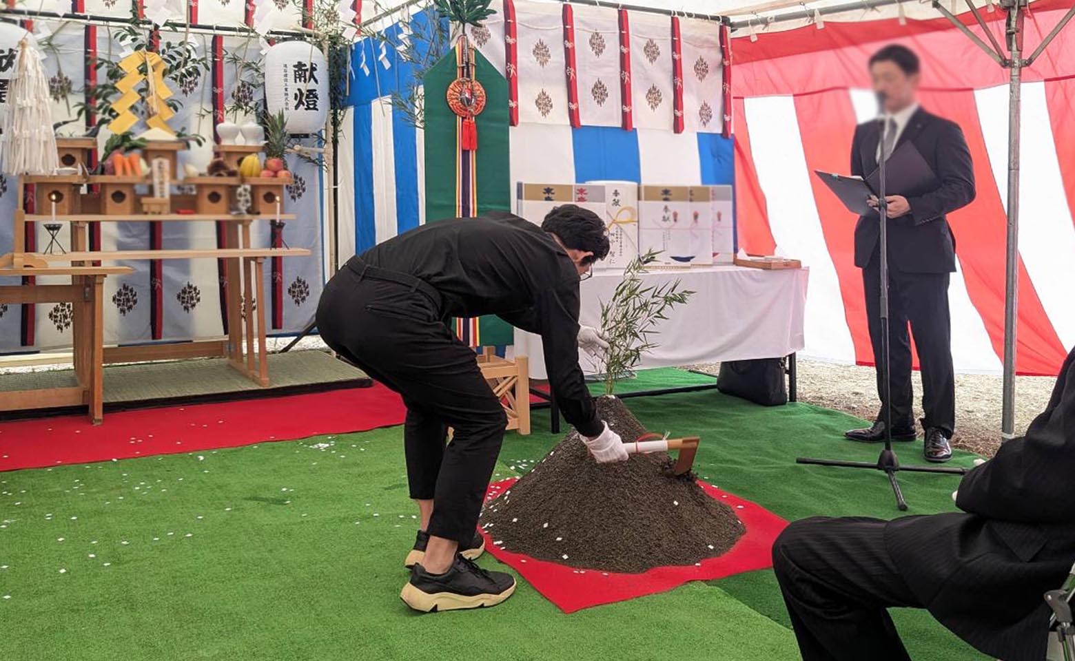 鍬入れを井上が行いました。身が引き締まる思いです。