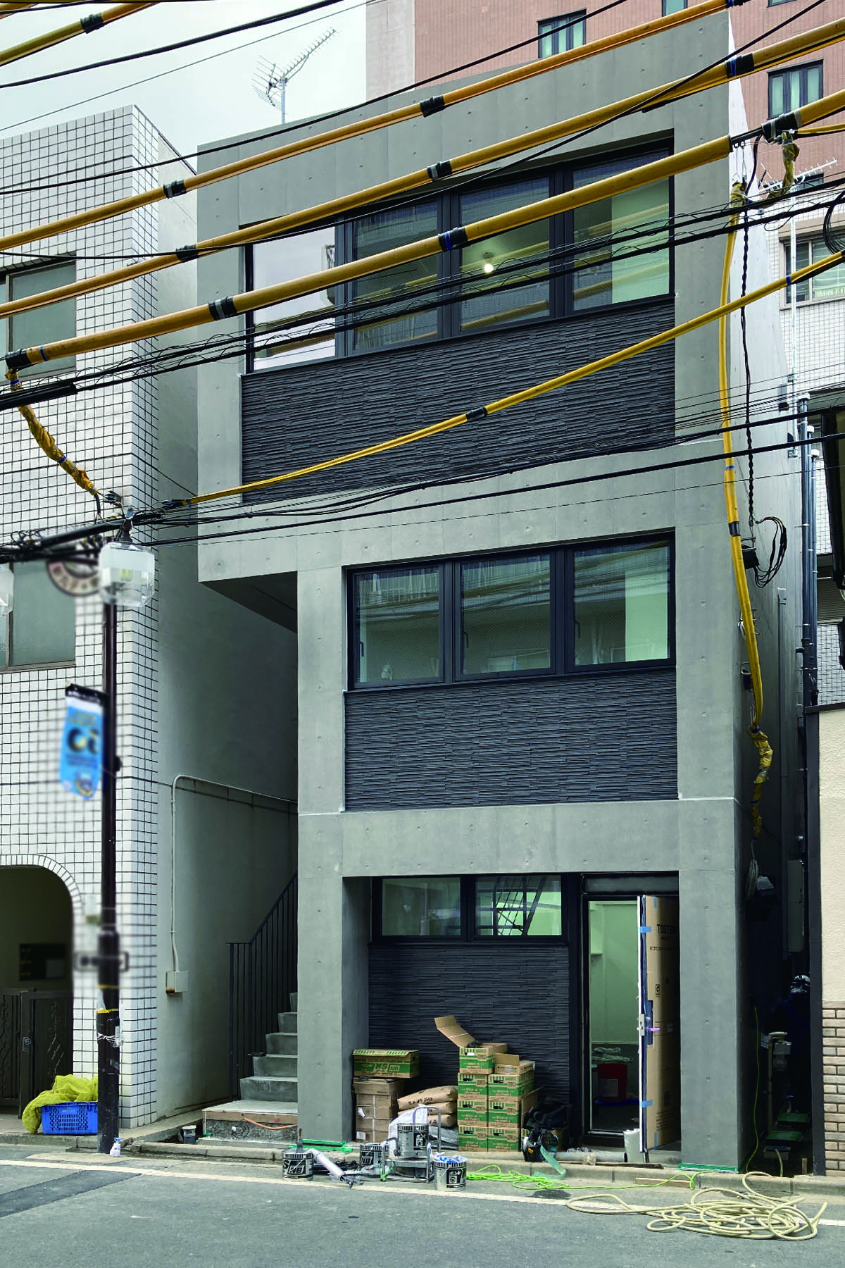 川崎で進めてきた、RCのオフィスは、そろそろ引渡しへ。鉄筋コンクリートの監理は、木造と比べて、細かな部分のチェックが多く、現場とのやりとりが大変でした。特に、元請けと下請け会社とのやりとりが、なかなかうまく行っておらず、現場が指定と違う、、、という場面も多く、細かな修正指示をしましたが、現場の監督も大変であったかと思います。