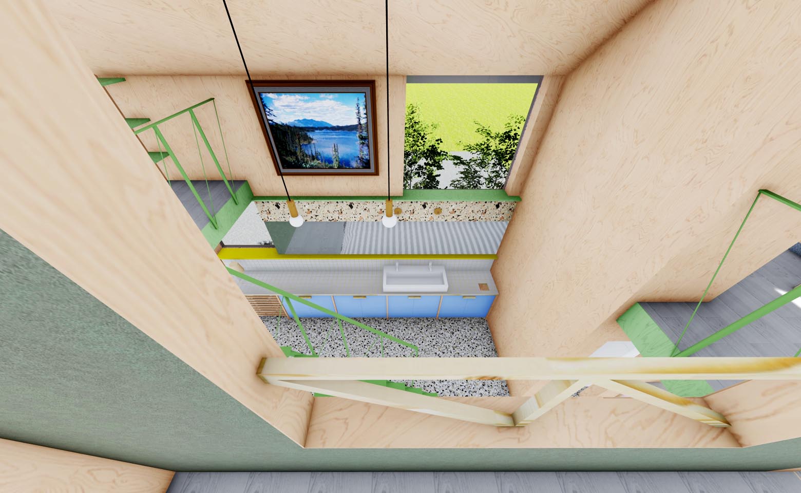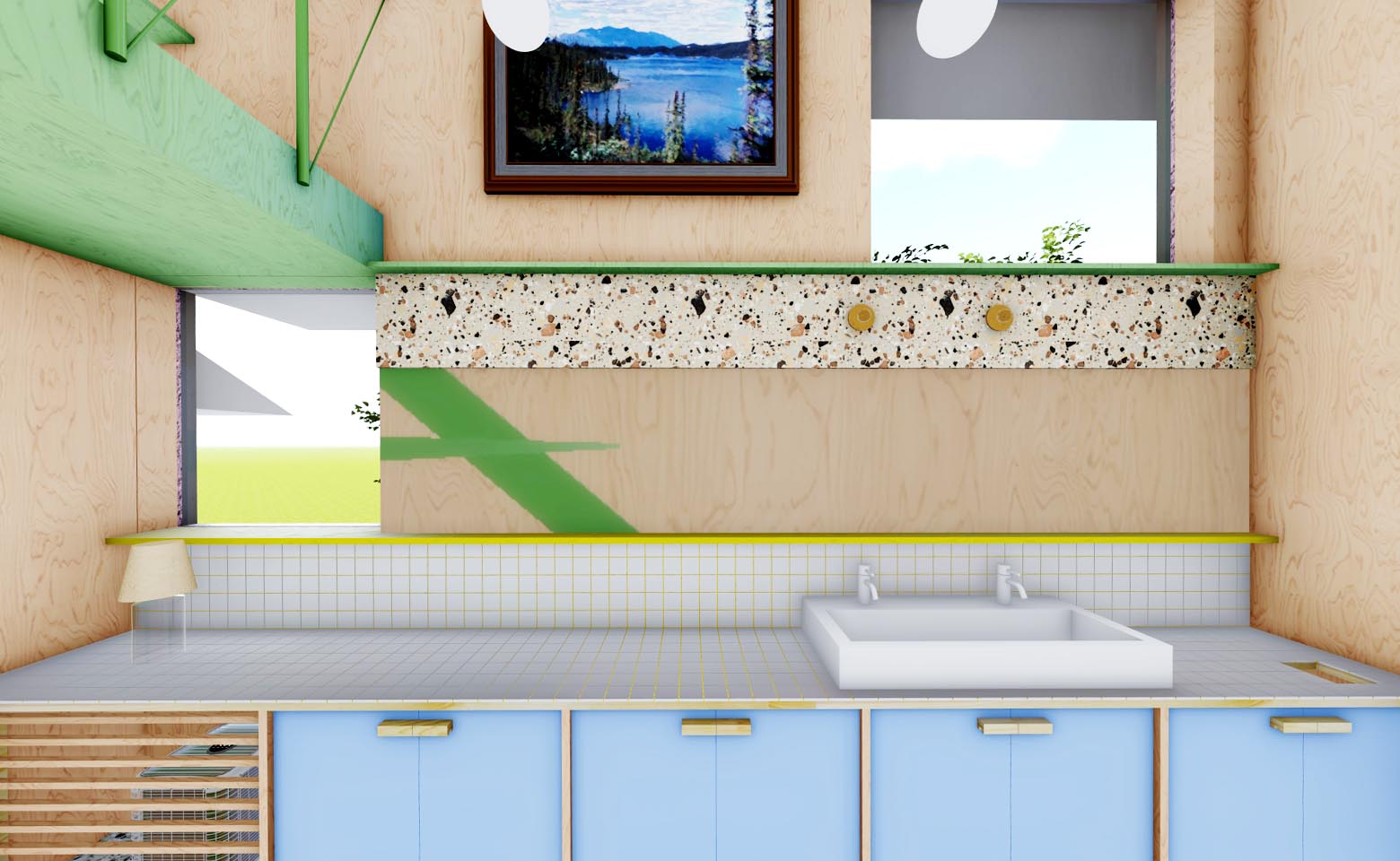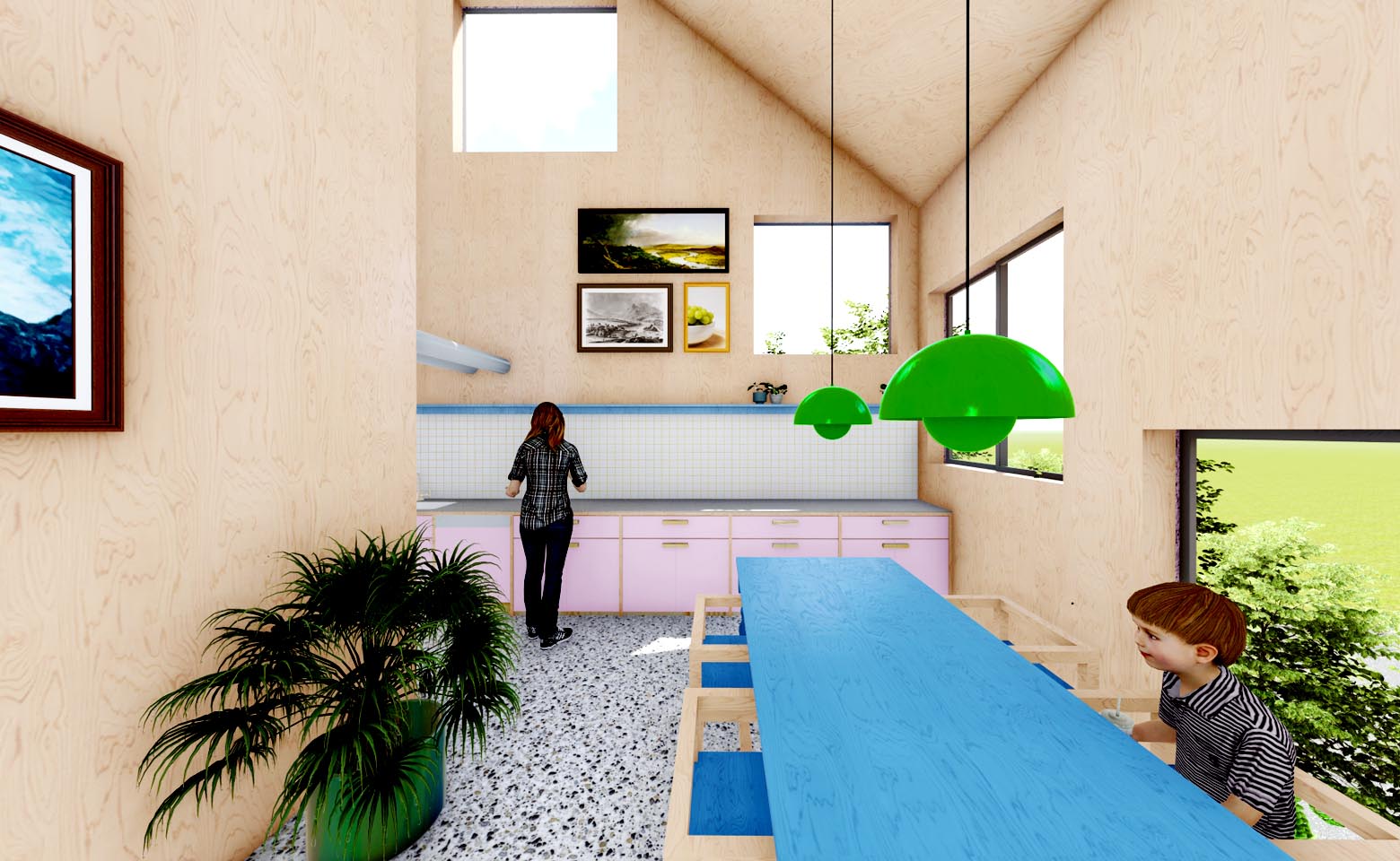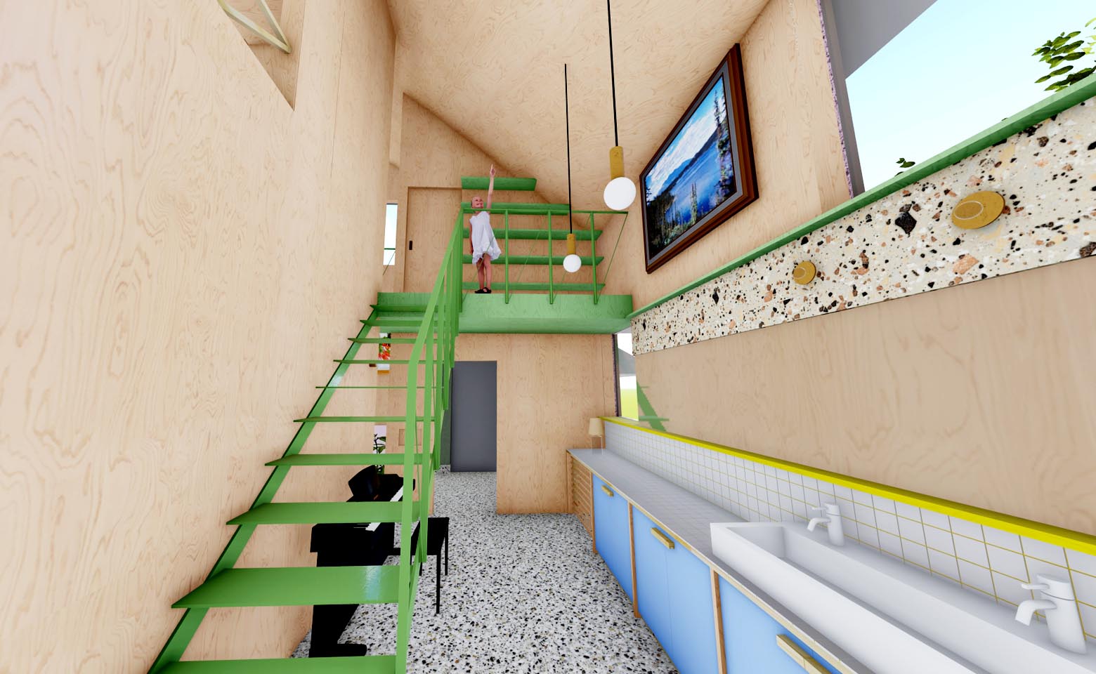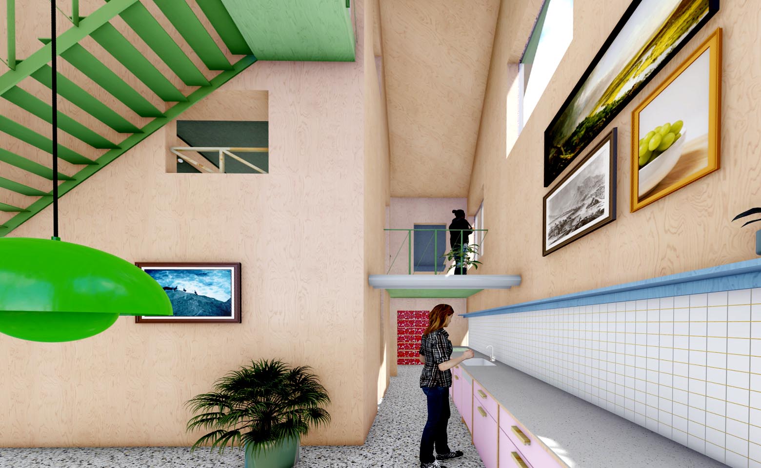 様々な場所ごとが、離れていながらも繋がり、繋がりながらも、適度な距離を保つ。森の中を縦横無尽に移動しながら暮らすような、実験的な住まいである。