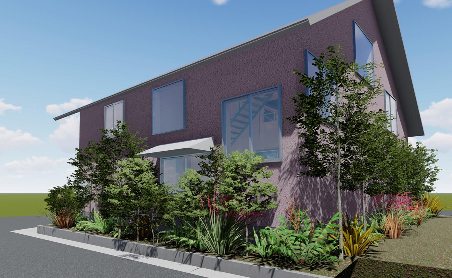 千葉県船橋市、もともとは、田畑であった川沿いの土地を、開発分譲した土地の1区画にたつ住宅の新築計画。